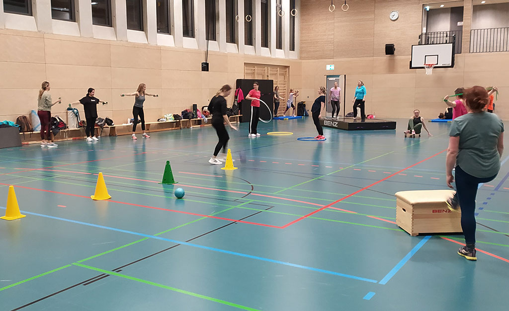 Das gleiche gilt natürlich für alle anderen Stunden der Fitnessgymnastik! Egal ob mit bekannten Handgeräten wie Hanteln oder Theraband oder auch einmal beim Kennenlernen von Neuem wie Flexibars, Jacaranda oder Ericson pads, jede Stunde garantiert ein kleines Stückchen „me time“ für Aktive.