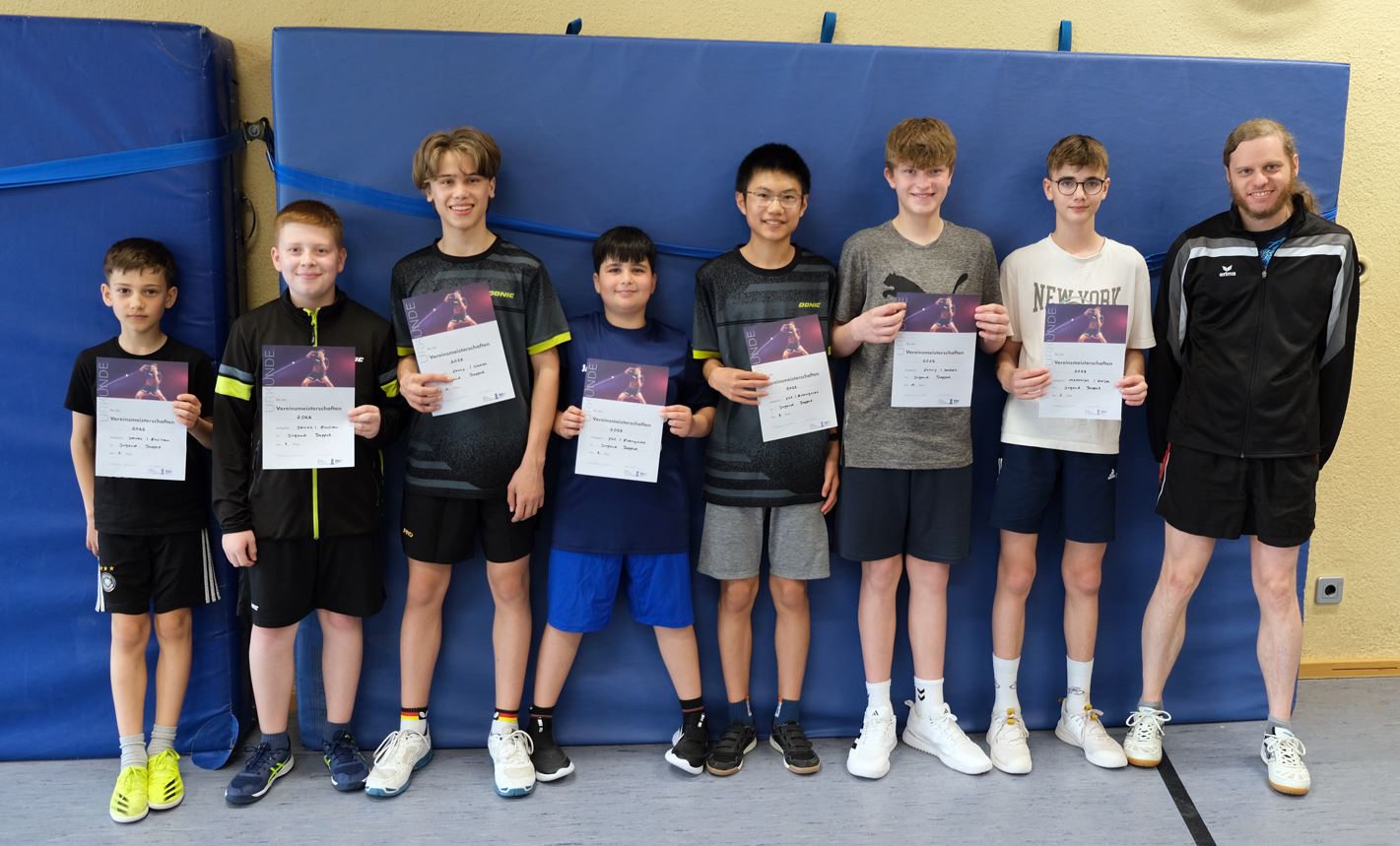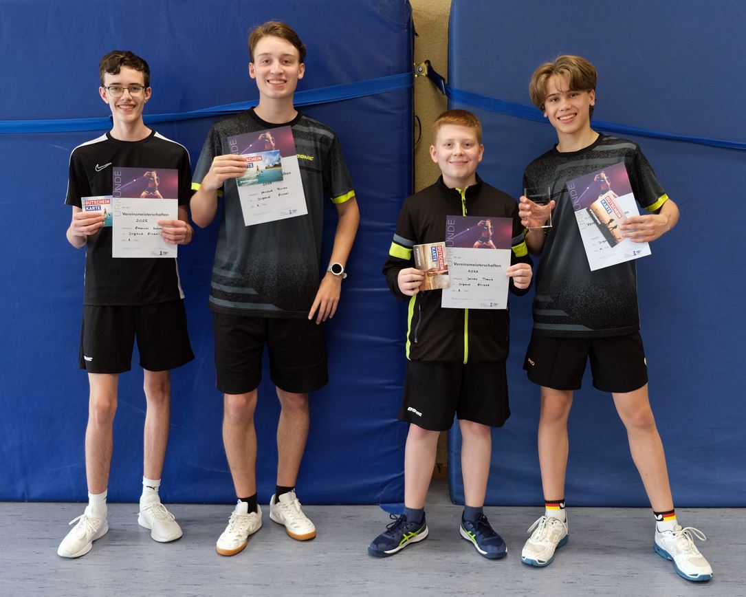 Die Vereinsmeisterschaften fanden dieses Jahr wieder direkt im Anschluss an die Saison Anfang Mai statt. Bei der Jugend nahmen 15 Spieler teil. In zwei Gruppen wurde um das Halbfinale gespielt. In der anschließenden KO-Phase wurde der Sieger ermittelt. Erwartungsgemäß setzte sich Lenny durch und wurde Jugend-Vereinsmeister 2025. Zweiter wurde Jonas. Den gemeinsamen dritten Platz teilten sich Emanuel und Yannick.