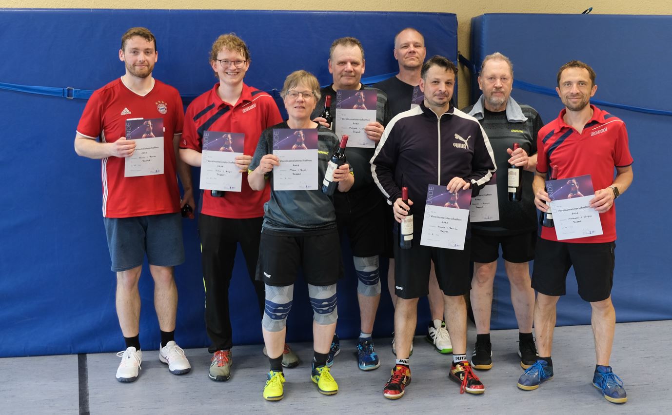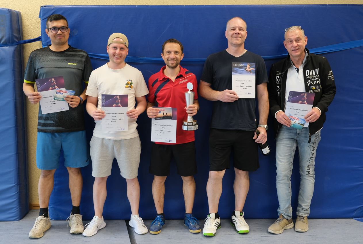 Bei den Aktiven versprach das Teilnehmerfeld einen spannenden Wettbewerb: Die ersten 12 Spieler der Mannschaftsaufstellung nahmen teil. Die insgesamt 17 Teilnehmer spielten in drei Vierer- und einer Fünfergruppe um die KO-Phase. Ins Halbfinale spielten sich vier Spieler der 1. Mannschaft. Hier setzten sich Rufus Wörn und Michael Ladu durch. Das spannende und umkämpfte Finale konnte Michi für sich entscheiden und gewann damit zum zweiten Mal den Vereinsmeistertitel der Aktiven. Gemeinsame dritte wurden Thomas Fischer und Rajesh Das. In der Trostrunde der in der Gruppenphase ausgeschiedenen Teilnehmer setzte sich im Finale Robert Schneider gegen Gerd Hofer durch.